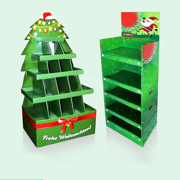 Round Xmas Tree Shape Design Cardboard Floor Display
